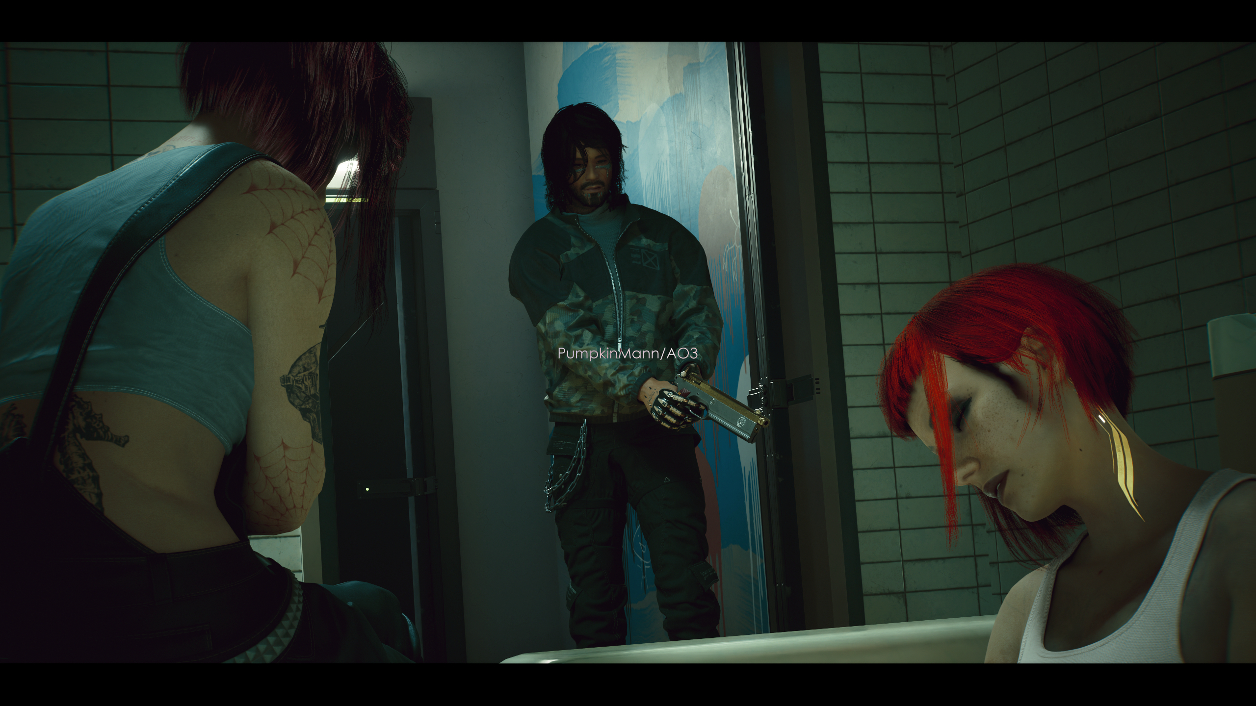They follow her through the camp again, and now Vincent realises that people were talking as they walk by, some calling out to Panam and others staring at the twins, as if they're two rats in a wolf's den. He hates that.