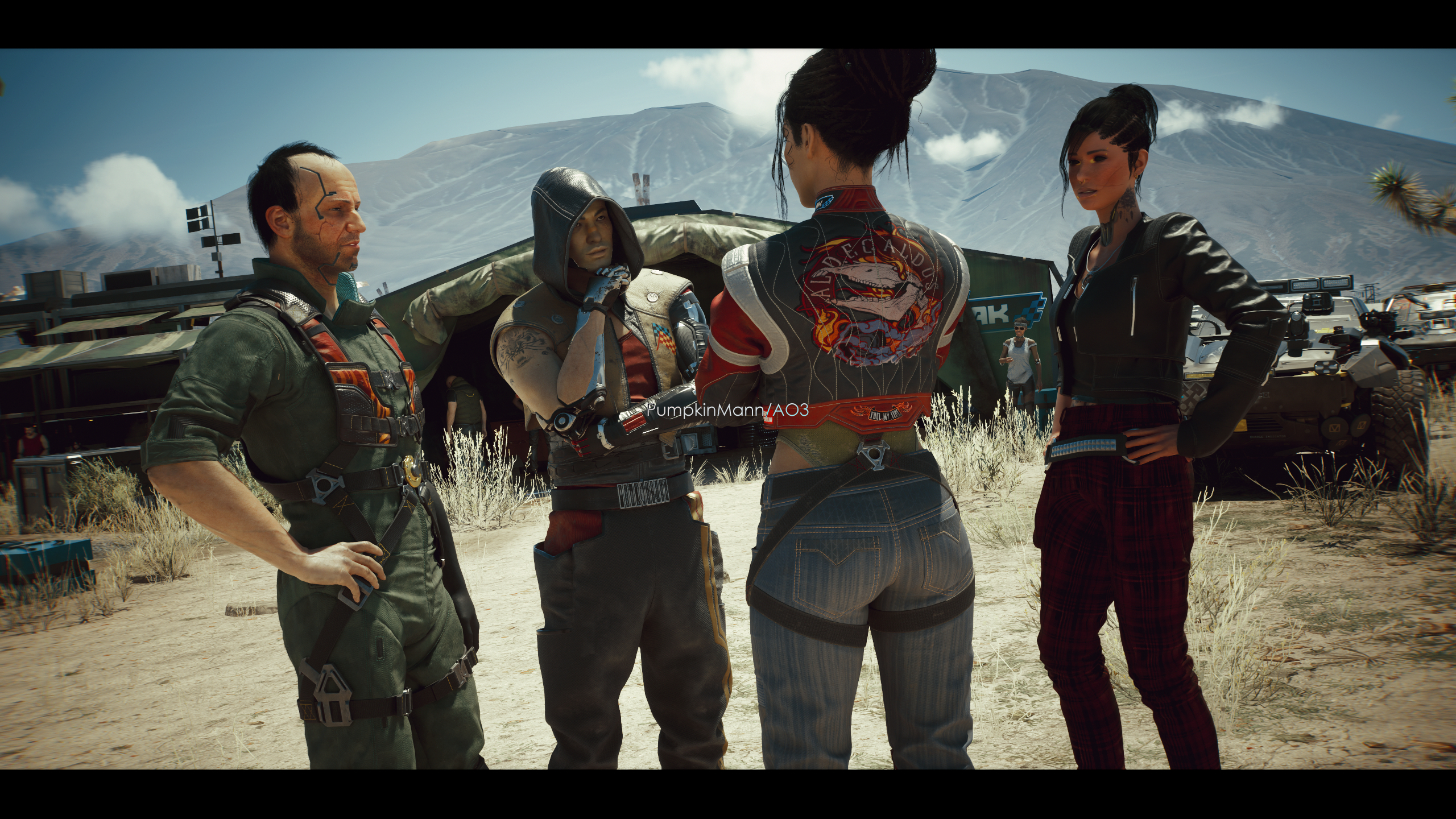 "Yeah..." But it was just wishful thinking. He reigns his emotions in before approaching Panam and the two men she's talking with.