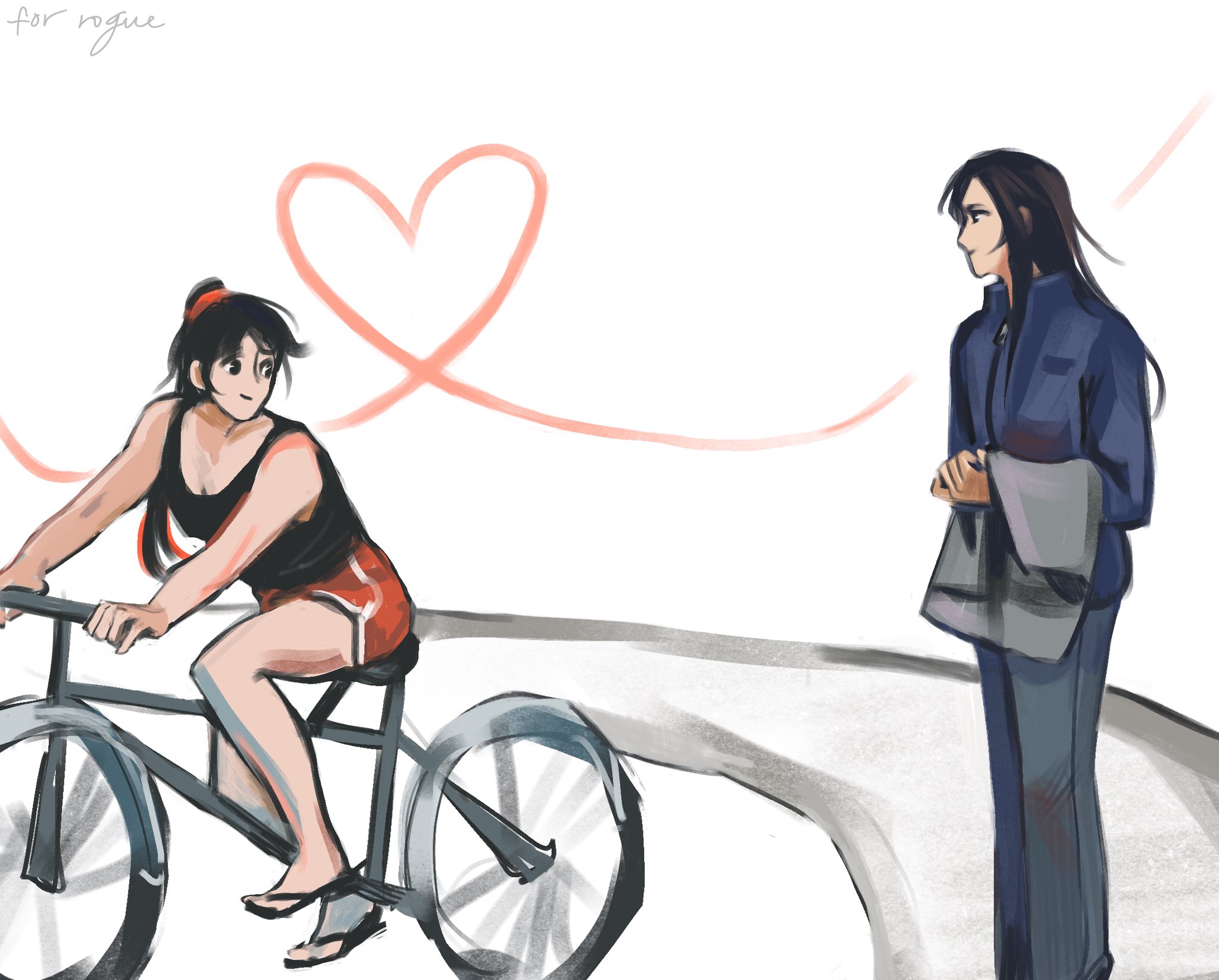 “Oh, just exploring.” Wei Ying fiddles absently with the gaudy decorations on her handlebars. “Did you know your street is almost perfectly level?” She smiles at Lan Zhan directly, who feels it like a hot knife in her side. Warmth spills through her from the wound. “I can ride around here all day and never get tired. It’s barely any work at all! Going downhill would be even less, but then I’d have to ride uphill again at some point, and that’s the worst. Do you have a bike, Lan Zhan?”