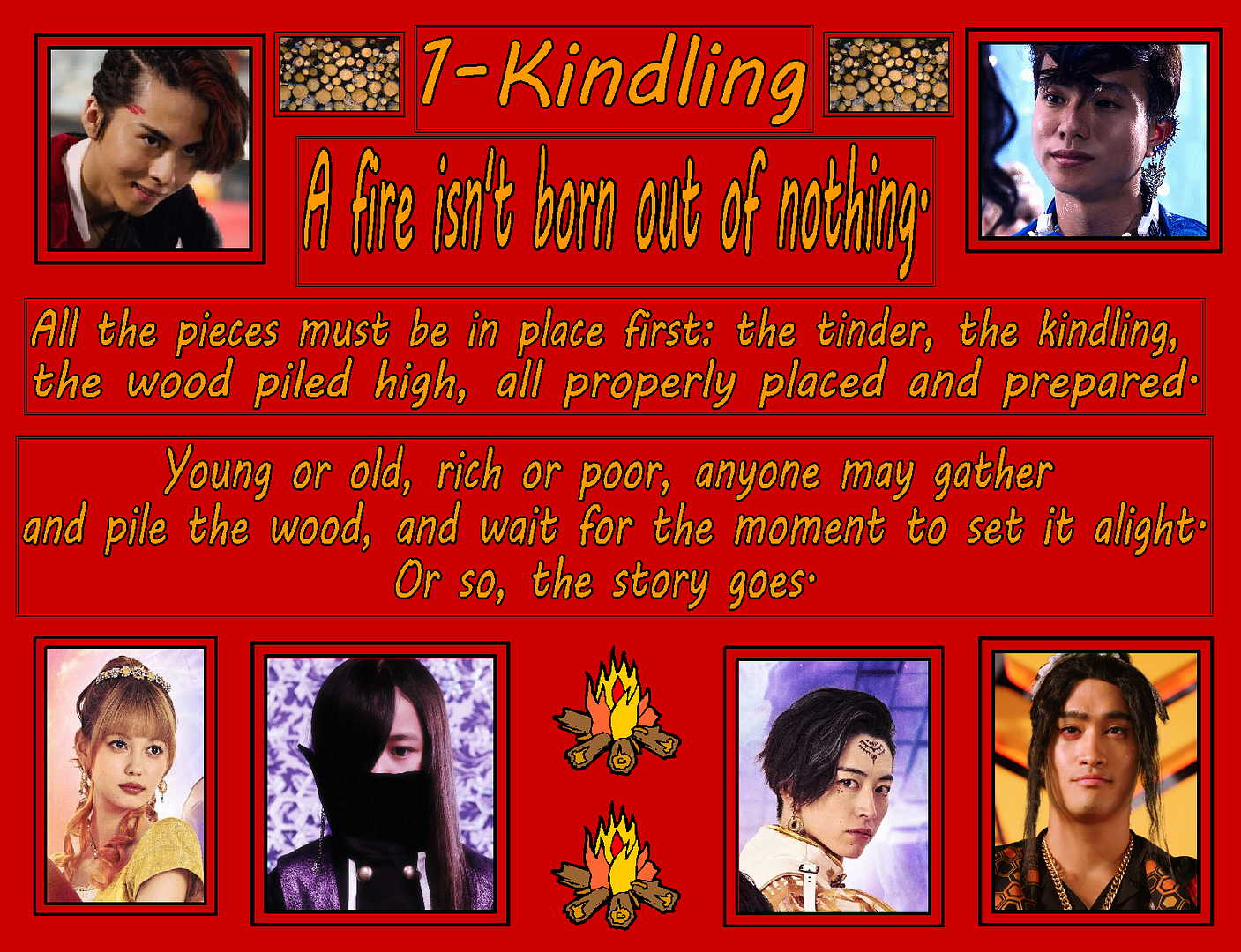A fire isn't born out of nothing. All the pieces must be in place first: the tinder, the kindling, the wood piled high, all properly placed and prepared. A wet log will not burn, after all, and a site soaked with kerosine would spiral out of control in seconds. It takes time and effort, and no small amount of skill, and yet it is something that nearly anyone can achieve, given the time, space, and necessity. Young or old, rich or poor, anyone may gather and pile the wood, and wait for the moment to set it alight.