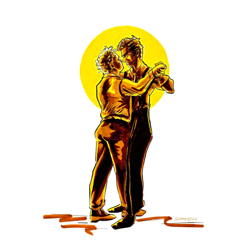 Aziraphale’s attention kept drifting towards the couples on the dance floor, the expression on his face halfway between nostalgic and yearning. That glimmer his eyes got when he was looking at something particularly heartwarming. The soft pursing of his lips that delicately creased his chin. The subtle knitting together of his eyebrows that wrinkled his forehead just the tiniest bit-