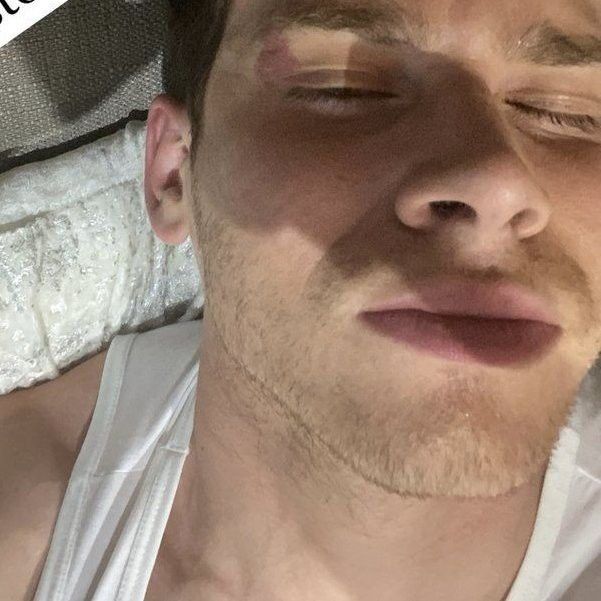 He is blond… kinda. More of a dirty-blond, light brownish colour. But Eddie’s not nitpicking. Prince Charming over there is gorgeous. That’s the main thing Eddie’s focused on. A cute face with beautiful eyes and a fittingly charming smile.