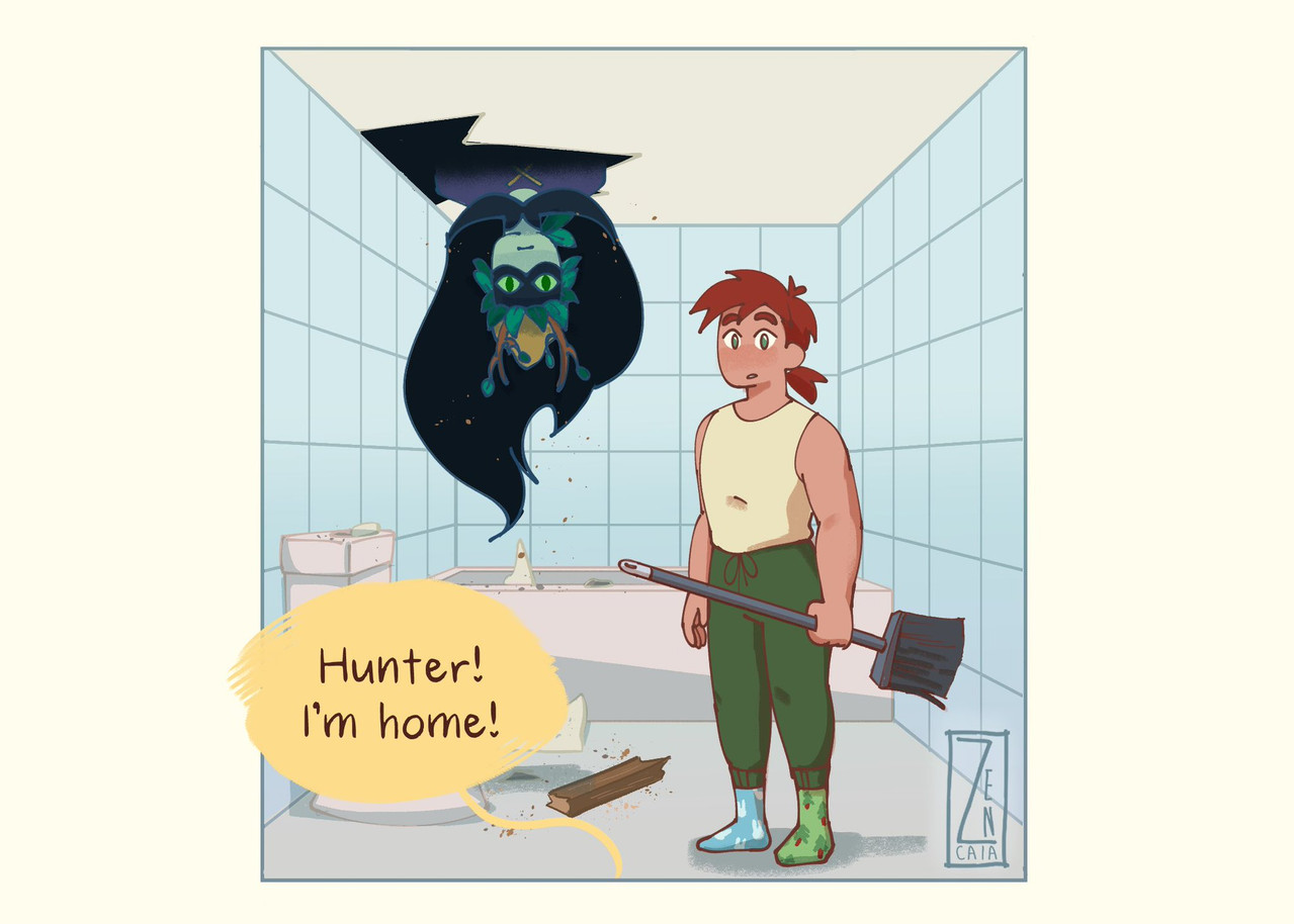 Maybe he could be happy here. She would gladly put in the work needed to make it a more suitable place for him to live. She could have Hunter patch the hole he made in the bathroom ceiling, and she could get another job just to afford a special meat fridge for him to fill up with whatever he wants. Then maybe his weird need to scavenge would be satisfied, Cake wouldn’t have to lose her new friend, and they could all focus on learning how to be a family together.