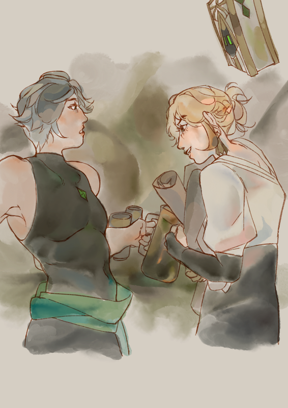 “You brute I just finished straightening out my shirt, hey,” Kaveh yelled but Alhaitham simply squeezed his face on the other’s cheek as if it were a pillow. Kaveh relents almost immediately and returns the other’s hug, he still has a lot of questions frankly about the past few weeks but perhaps that could wait.