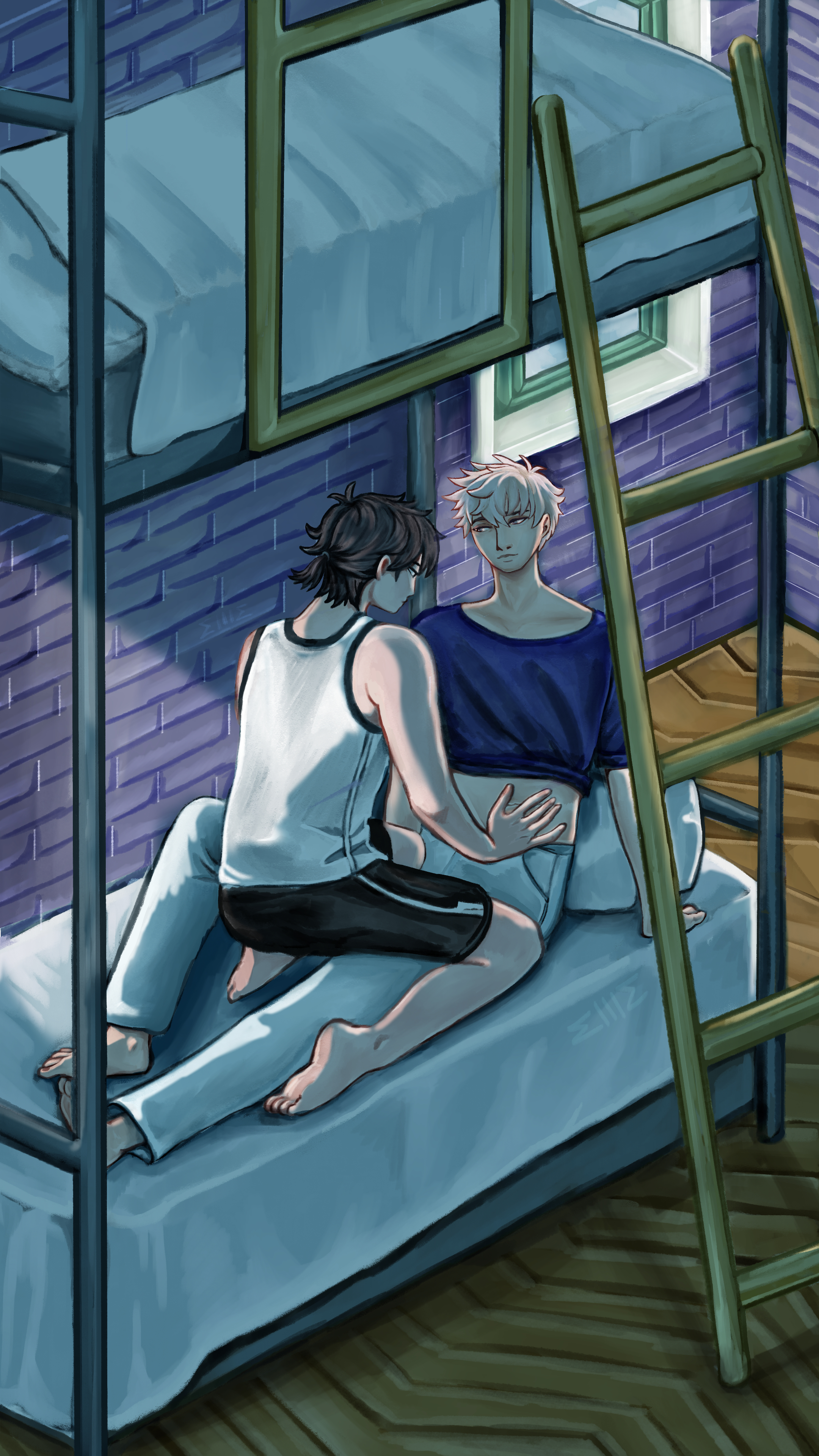 Shiguang fanart of them on cheng xiaoshi's bed having a intimate moment.