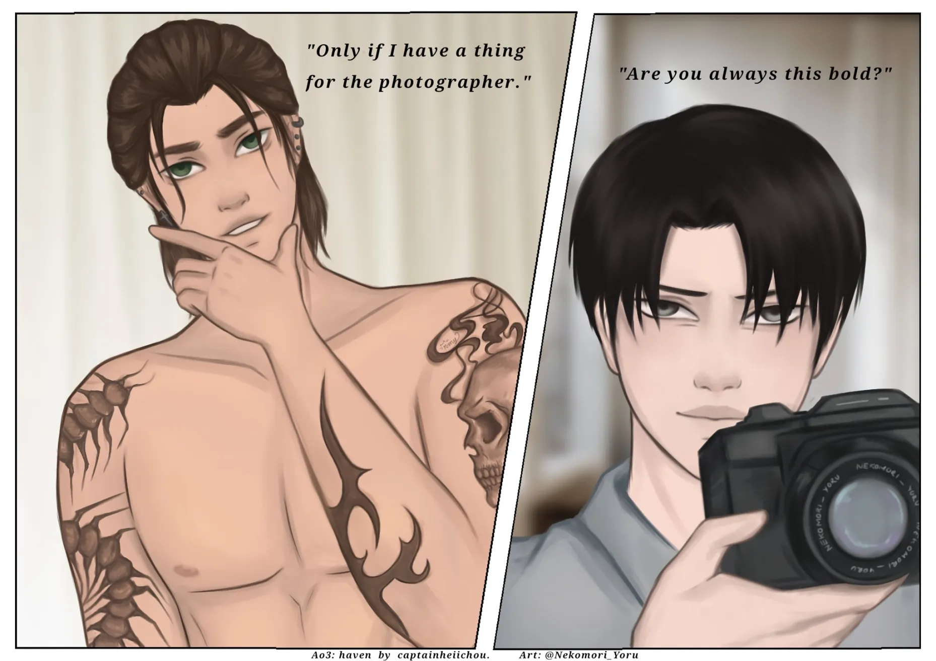 What… the hell does that even mean? How do fans determine that sort of shit from a limited view of these people through the social media lens? He doesn’t ask. He doesn’t care enough, all he cares about is the fact that Eren’s eyes are still on him and god, he’s the finest fucking person Levi’s seen in a very long time.