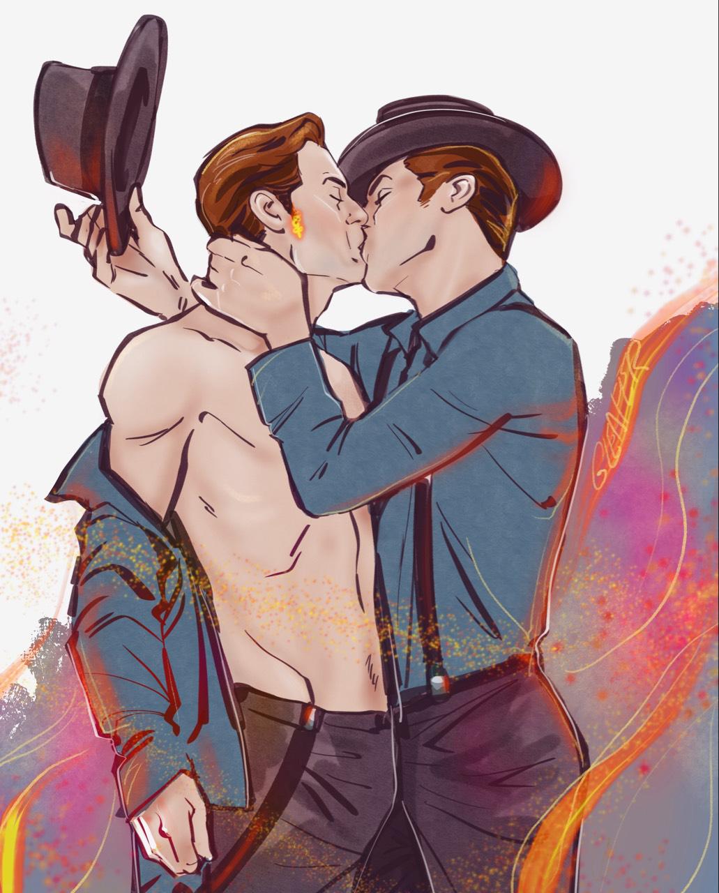 Crowley stole a kiss on Aziraphale’s temple before sauntering back to his place in front of the mirror.